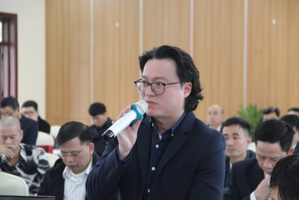 Ông Phạm Nguyên Hải – Trưởng Phòng Pháp chế (Công ty TNHH Khai thác chế biến khoáng sản Nùi Pháo) đóng góp ý kiến tại Hội thảo – Ảnh: Hoàng Phòng